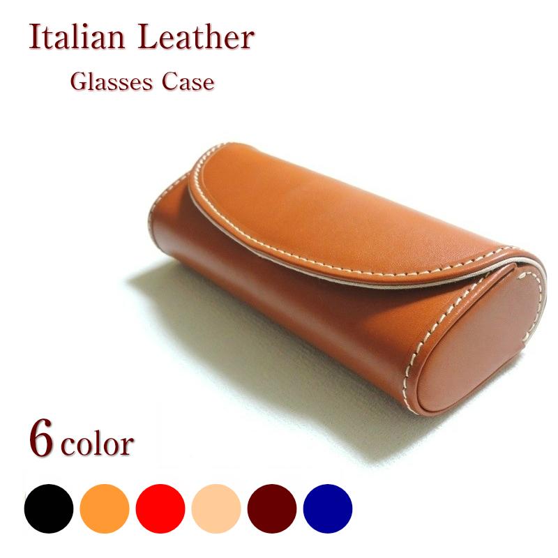 イタリア製牛革の大人メガネケース オレンジ メガネケース ケース オレンジ